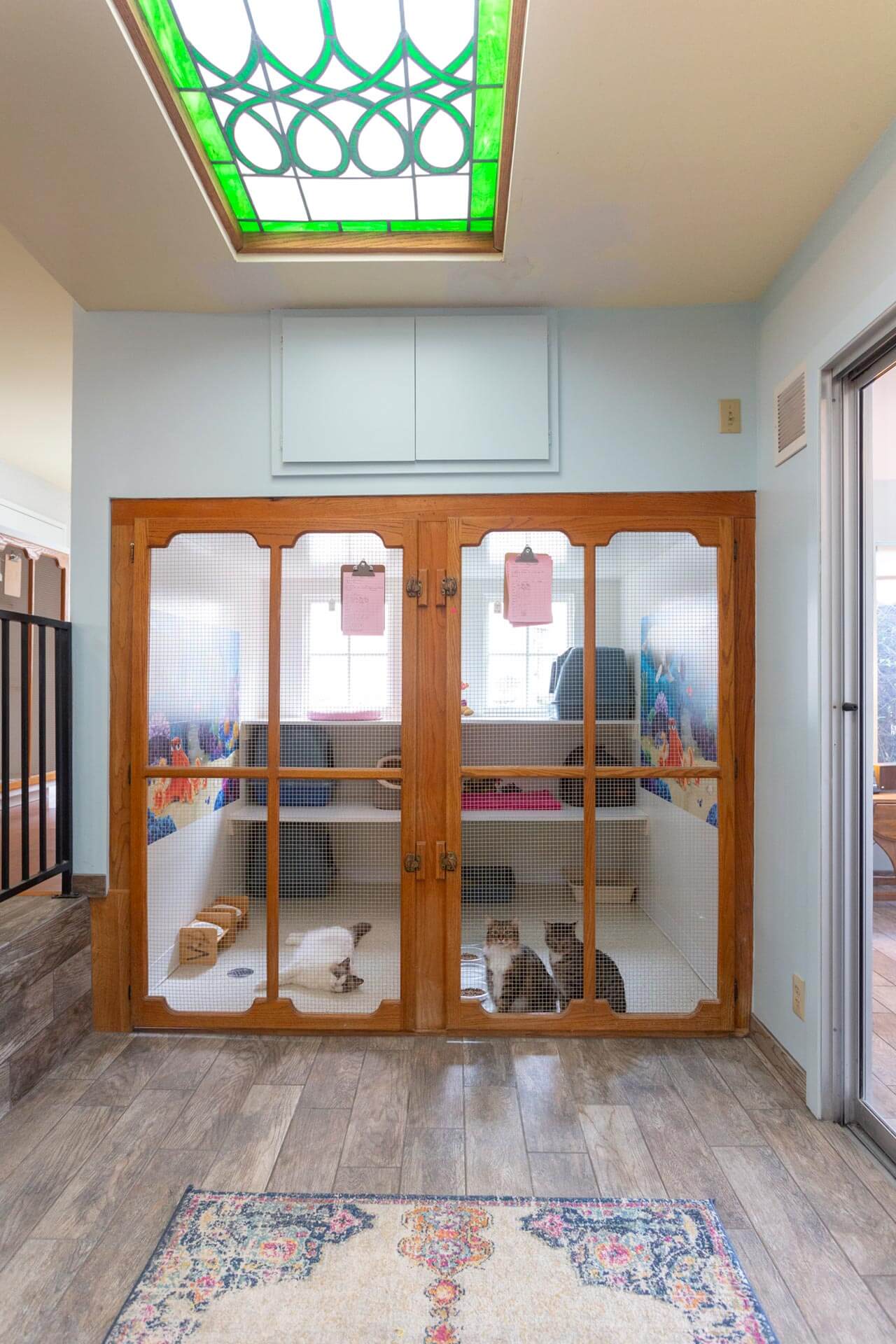 Dogs from the same household may share accommodations; please let us know if they need to be separated at mealtime. Cats from the same household may be lodged together as long as they are able to eat in the same space. If cats cannot eat together, they will need to be housed separately. Multiple cats that are sharing a space will need to be booked into a mid-size or larger suite.