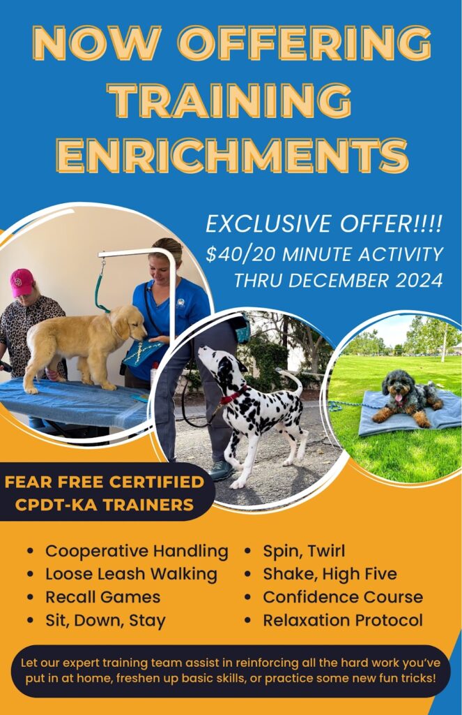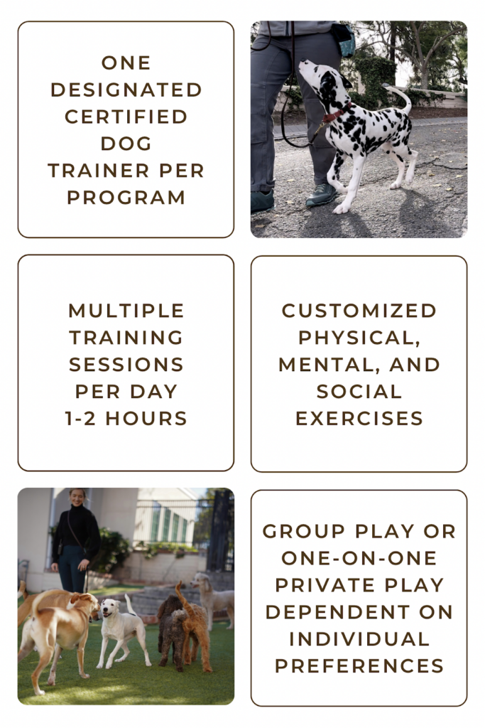 Add a 20 minute Training Enrichment activity to any dog daycare or boarding visit. Limited spots available on a first come, first served basis. Check availability with our front desk staff when booking your dog’s next visit with us! Each session comes with a report card and photos.